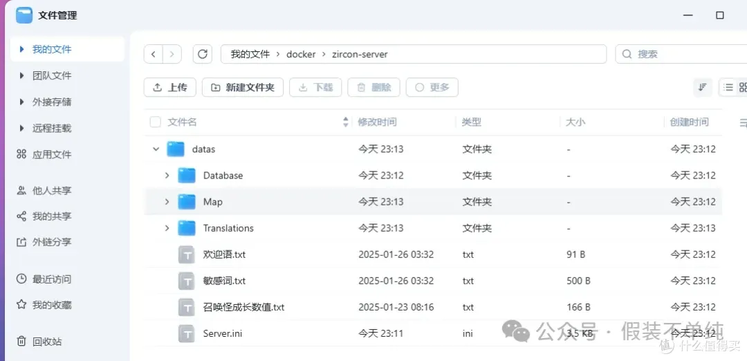 上传配置文件数据:将上面下载的【服务器数据】–【datas】文件夹一起上传到nas上新建的目录里。